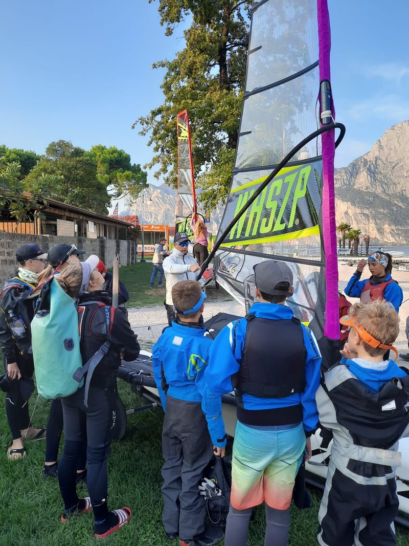 Der Gardasee ist sehr schön, weil es fast immer Wind hat. Der Wind "Vento" bläst morgens aus dem Norden und die "Ora" bläst nachmittags aus dem Süden. Wir konnten super trainieren! Am Mittwoch hatten wir einen Vorwindtag. Gemeinsam assen wir den z‘Mittag auf dem Wasser. Am nächsten Tag konnten wir "WASZP" segeln. Das Boot ist sehr kippelig und auch recht schnell, wenn es übers Wasser fliegt. Jacob und Simon kamen mit dem Foil raus und auch Lars kam fast hoch. Den Rest des Tages hatten wir frei. Jeden Abend holten wir uns nach dem Essen ein Eis bei Flora, der besten Gelateria in Riva.